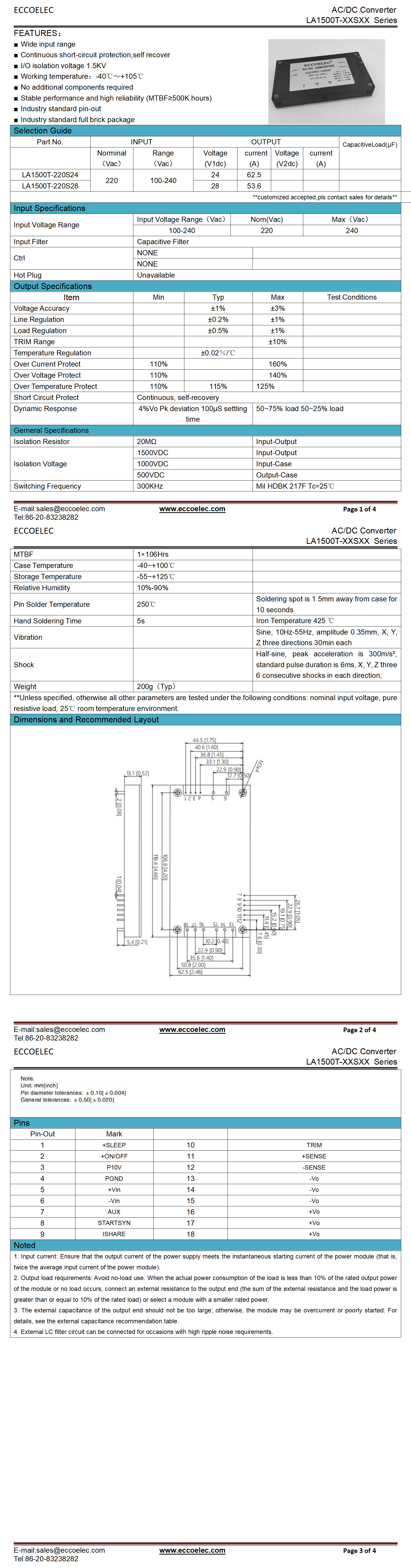ECCO ELECTRONICS TECHNOLOGY CO.,LIMITEDis a well-known power module manufacturer. Its main products are DC power module, ACDC power module, dcdcdc power module, conversion power module and so on.