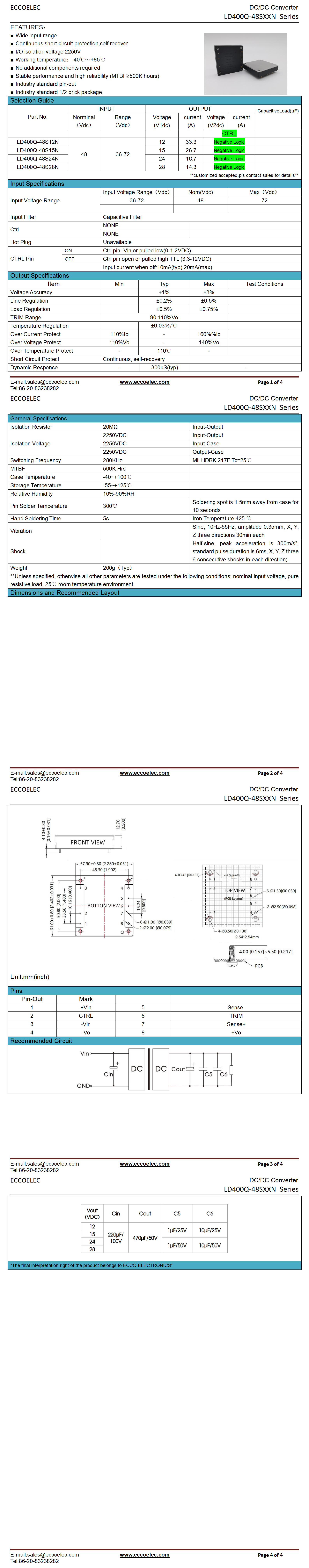 ECCO ELECTRONICS TECHNOLOGY CO.,LIMITEDis a well-known power module manufacturer. Its main products are DC power module, ACDC power module, dcdcdc power module, conversion power module and so on.