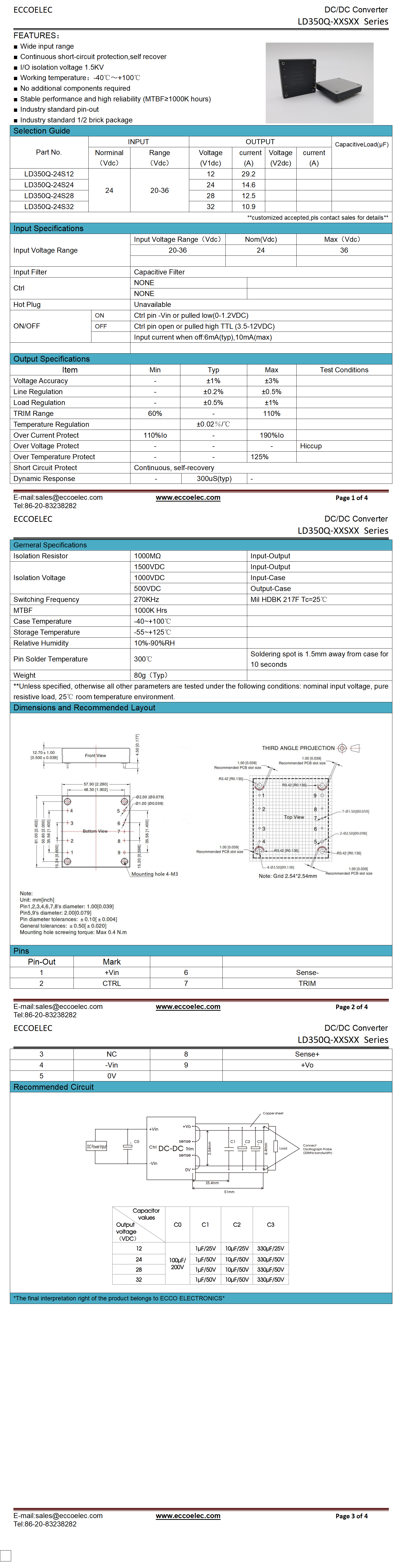 ECCO ELECTRONICS TECHNOLOGY CO.,LIMITEDis a well-known power module manufacturer. Its main products are DC power module, ACDC power module, dcdcdc power module, conversion power module and so on.