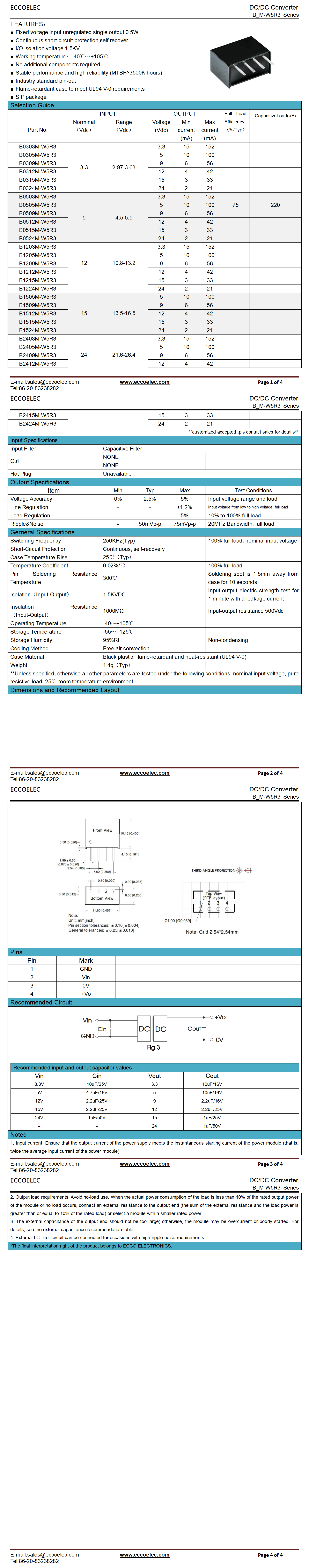 - Output voltage: 3.3V/5V/9V/12V/15V/24V