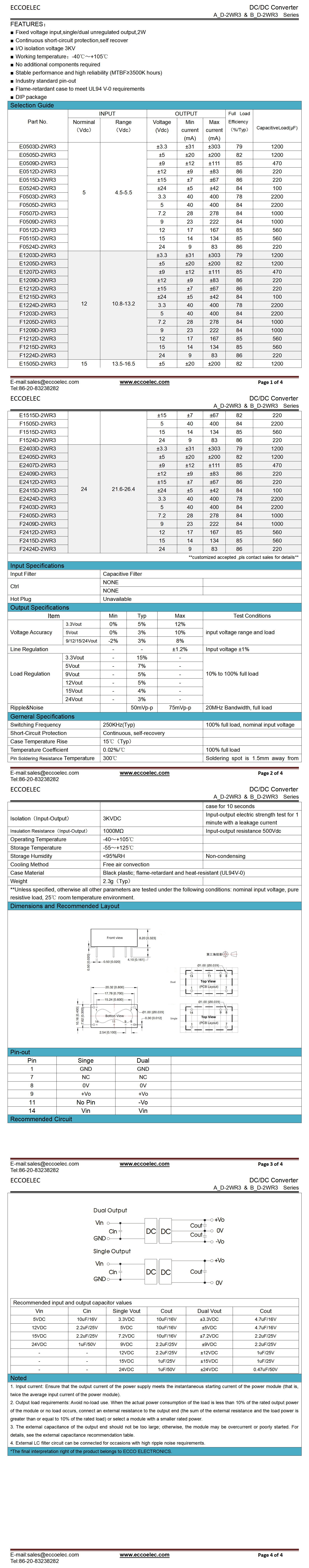 - Output voltage: 3.3V/5V/9V/12V/15V/24V,±3.3V,±5V,±9V,±12V,±15V,±24