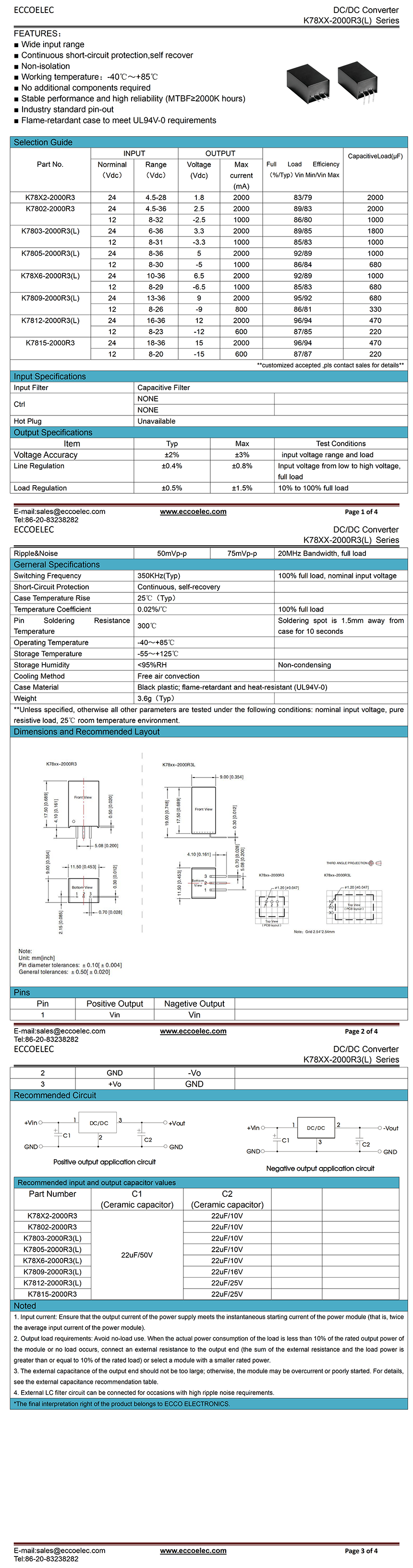 - Output voltage: 1.8,±2.5,±3.3,±5,±6.5,±9,±12,±15