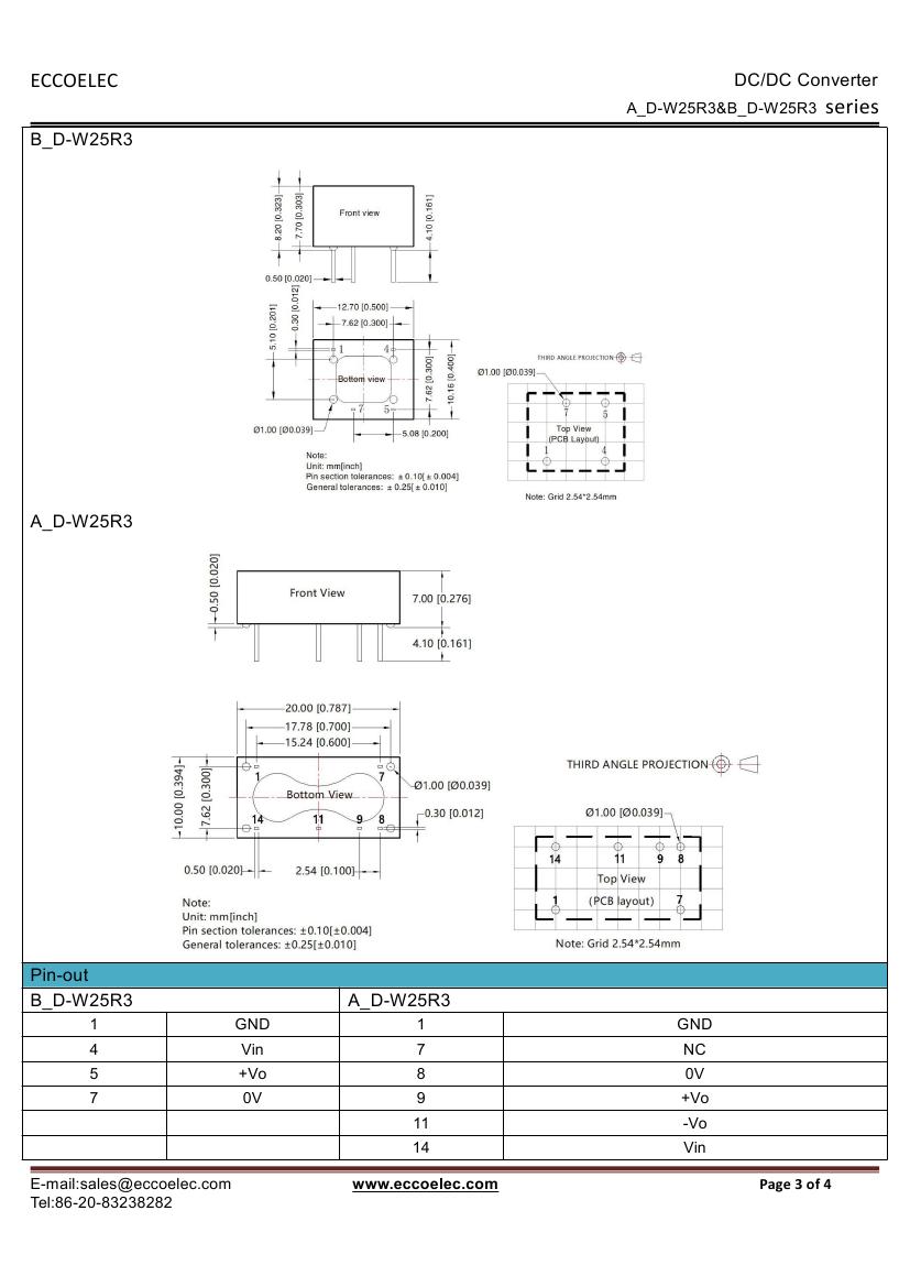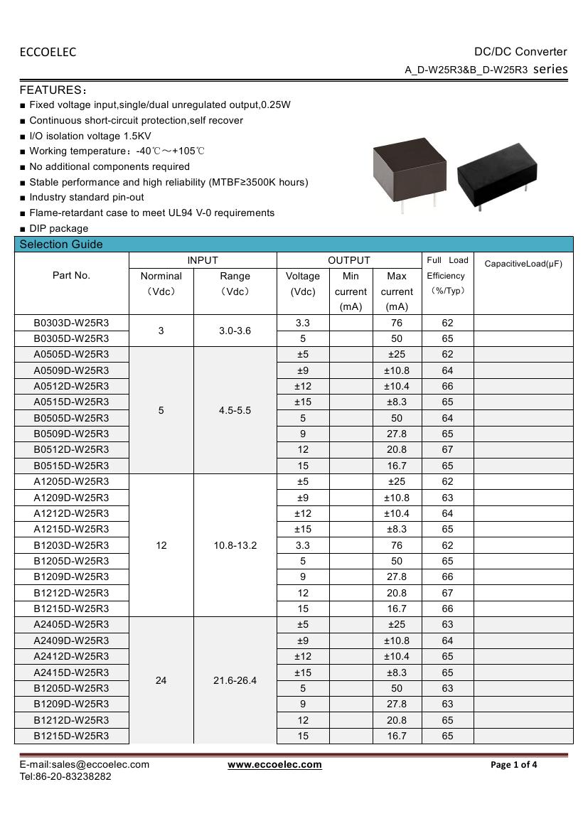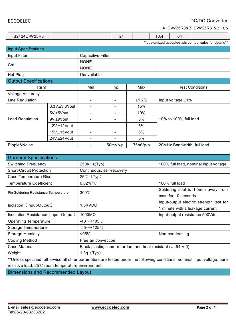 - Output voltage: 3.3V/5V/7.2V/9V/12V/15V/24V/±5V/±9V/±12V/±15V/±24V