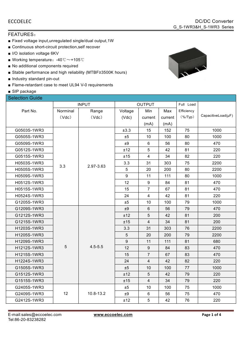 - Output voltage: 3.3V/5V/9V/12V/15V/24V,±3.3V,±5V,±9V,±12V,±15V,±24