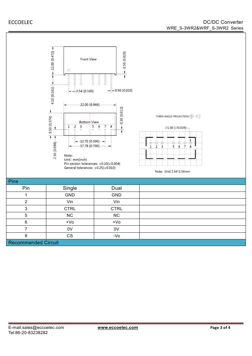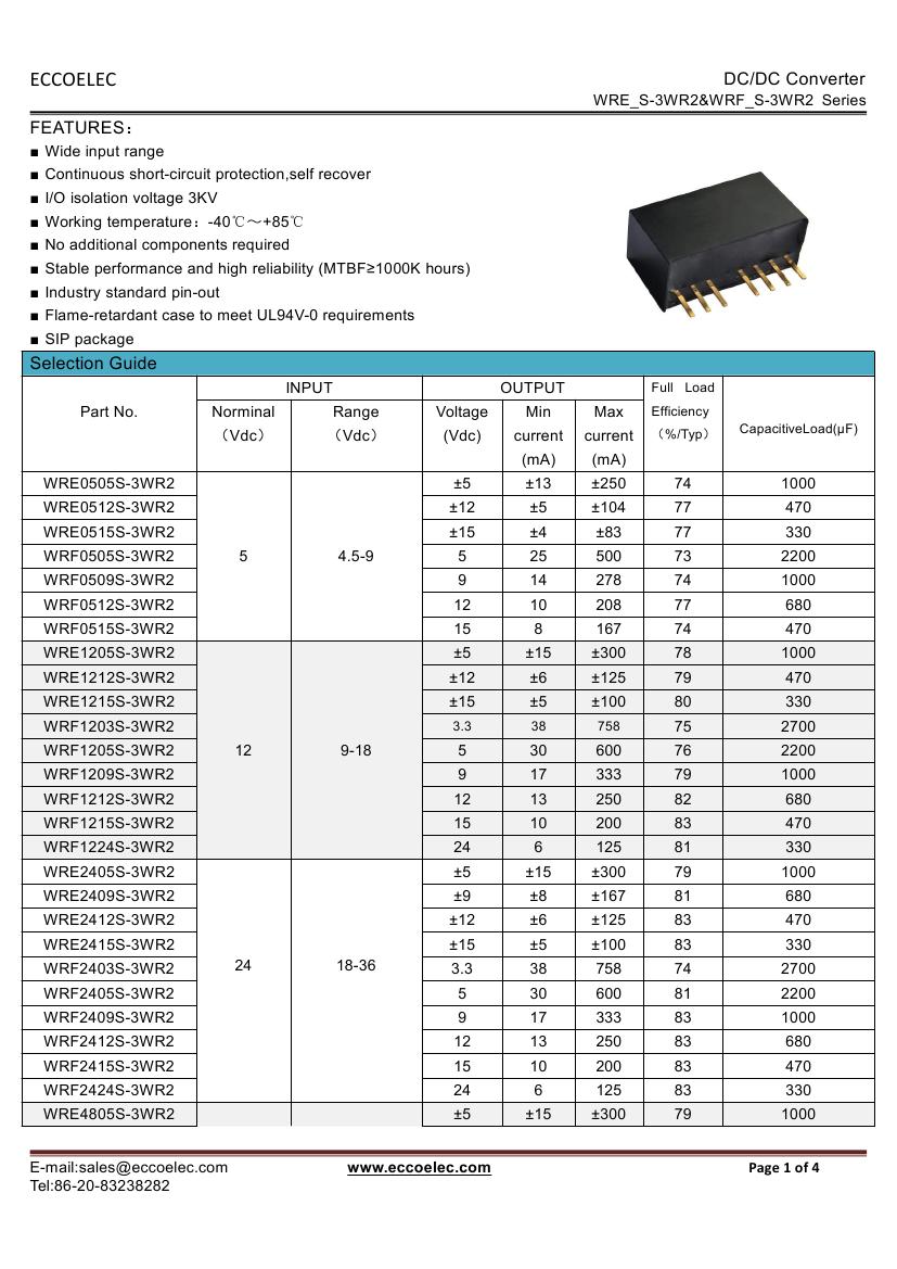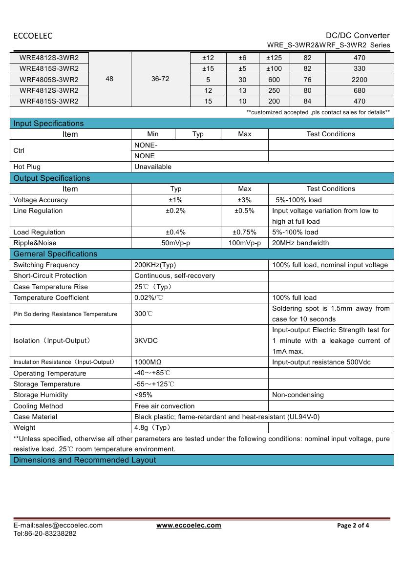 - Output voltage: 3.3V/5V/6V/9V/12V/15V/24V,±5V,±9V,±12V,±15V,±24V