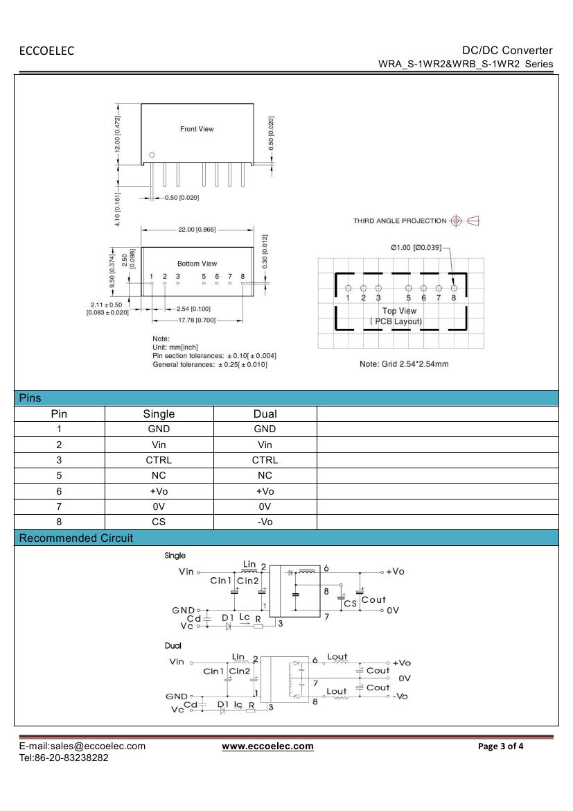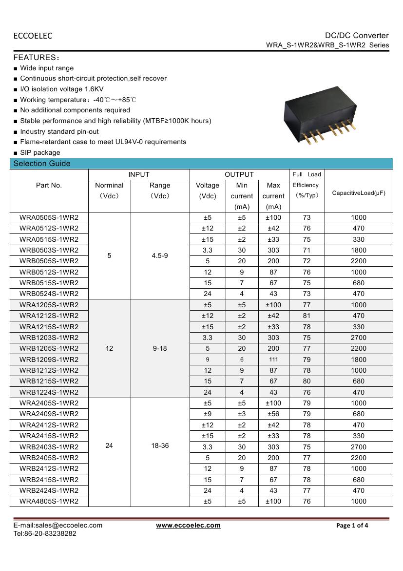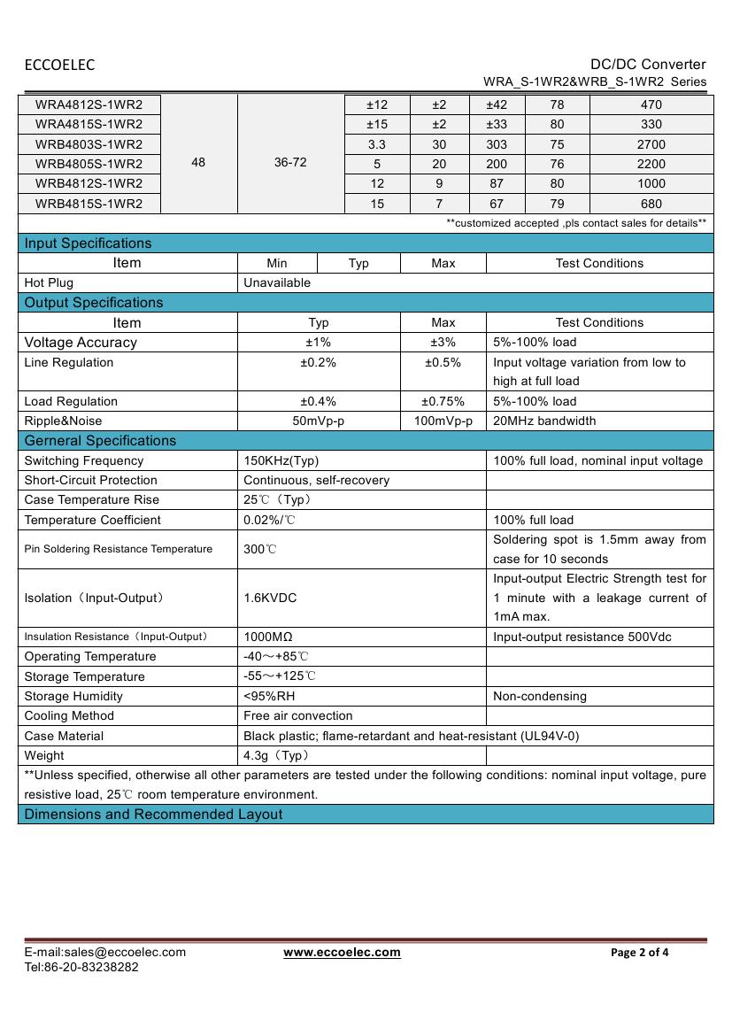 - Output voltage: 3.3V/5V/9V/12V/15V/24V,±5V,±12V,±15V