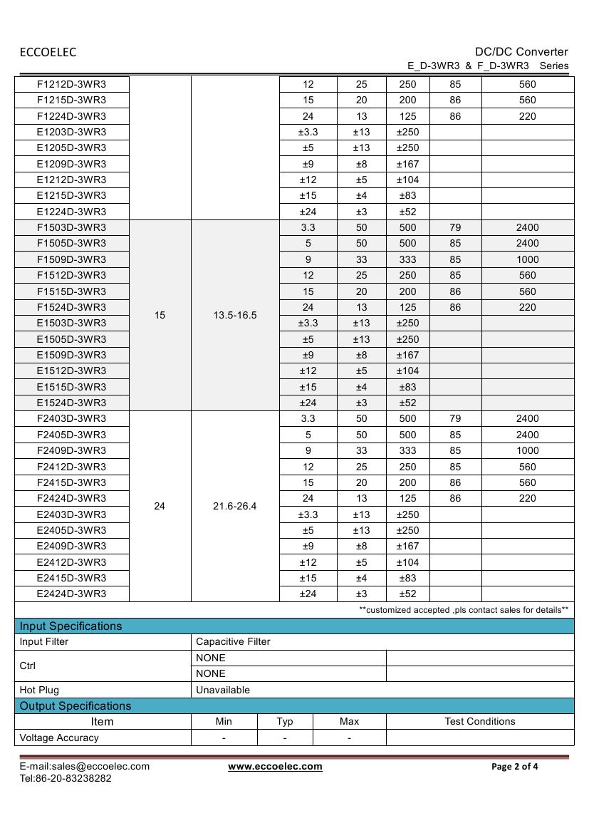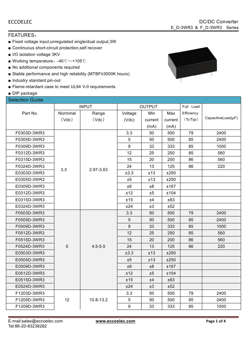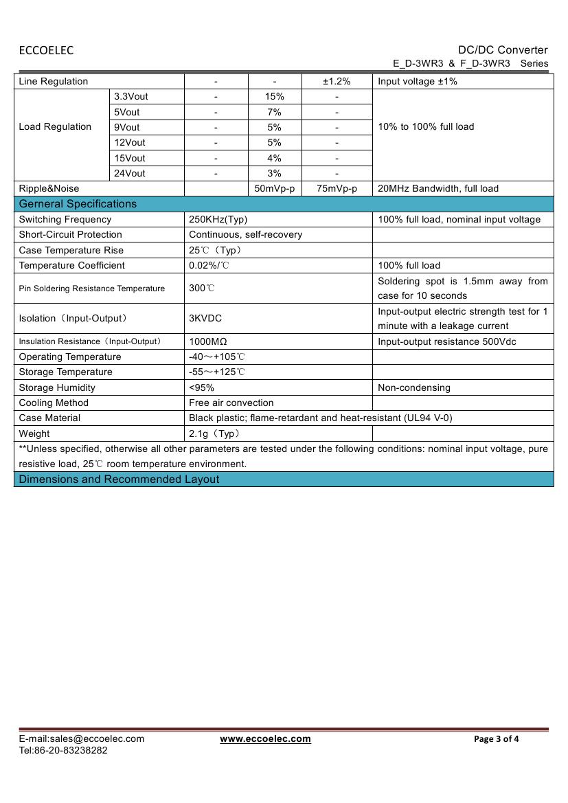 - Output voltage: 3.3V/5V/12V/15V/24V,±3.3V,±5V,±9V,±12V,±15V,±24V