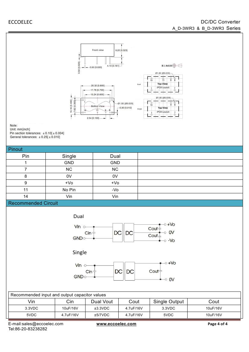 - Output voltage: 3.3V/5V/12V/15V/24V,±3.3V,±5V,±9V,±12V,±15V,±24V