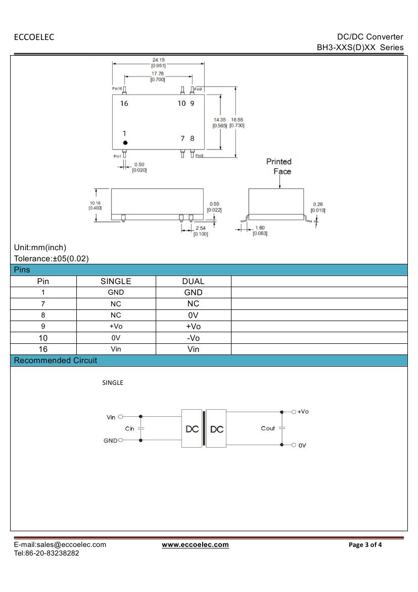 - Output voltage: 3.3V/5V/12V/15V/24V,±5V,±9V,±12V,±15V