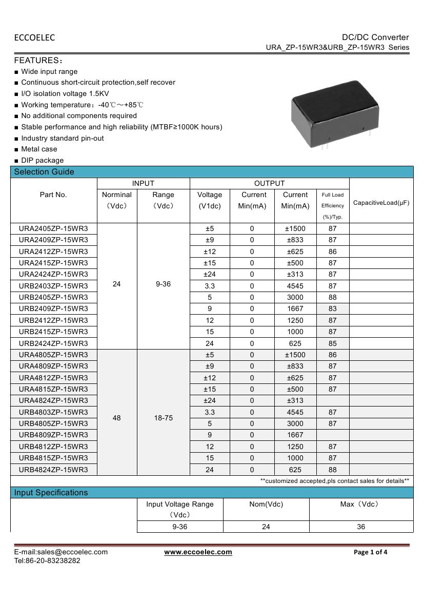 - Output voltage: 3.3v,5V/12V/15V/24V,±5V,±9V,±12V,±15V,±24V