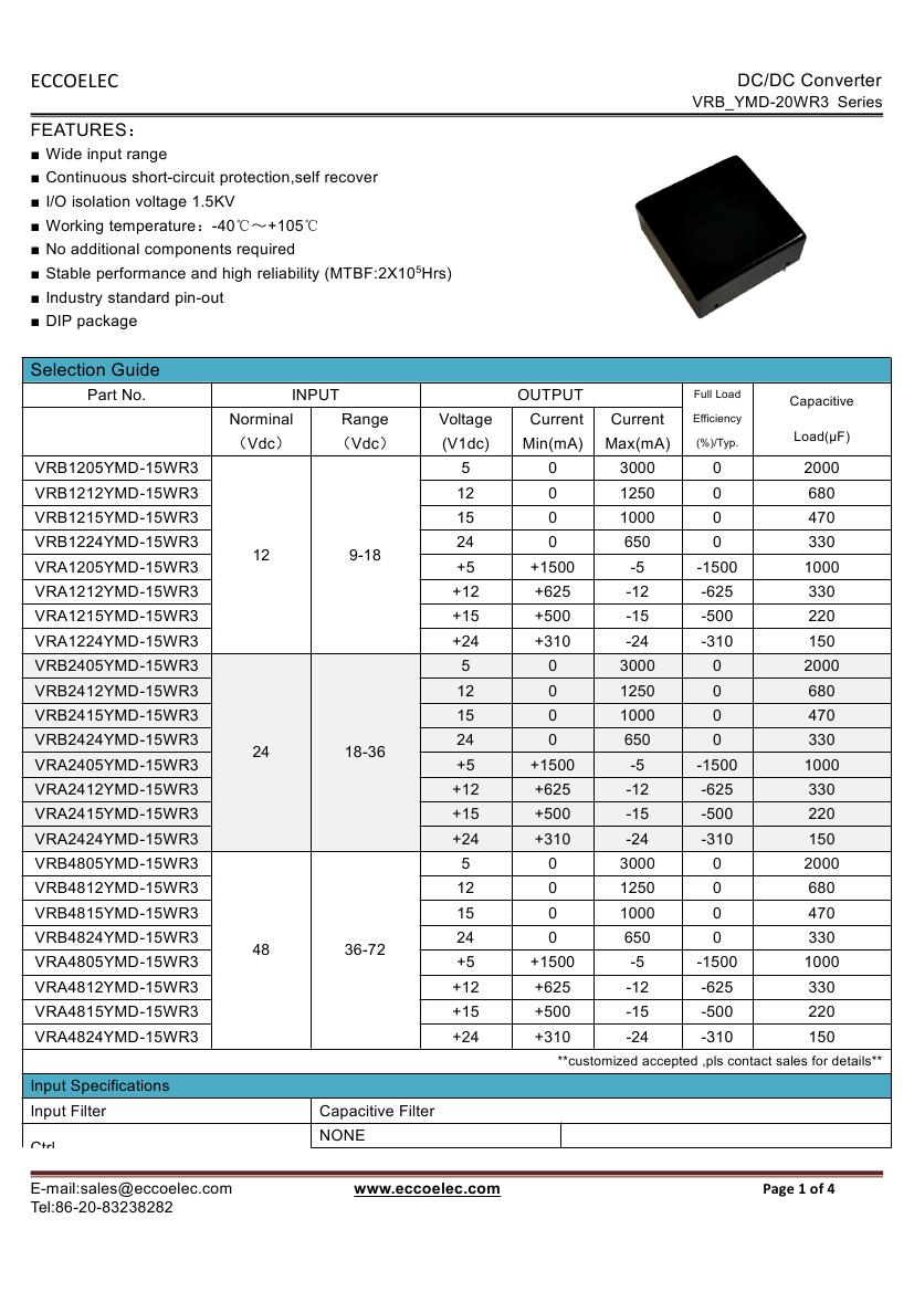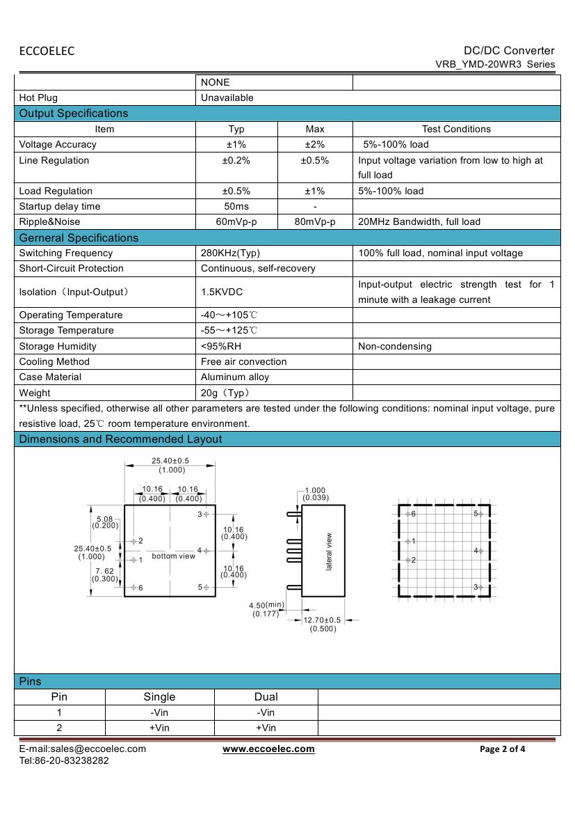 - Output voltage: 5V/12V/15V/24V,±5V,±12V,±15V,±24V