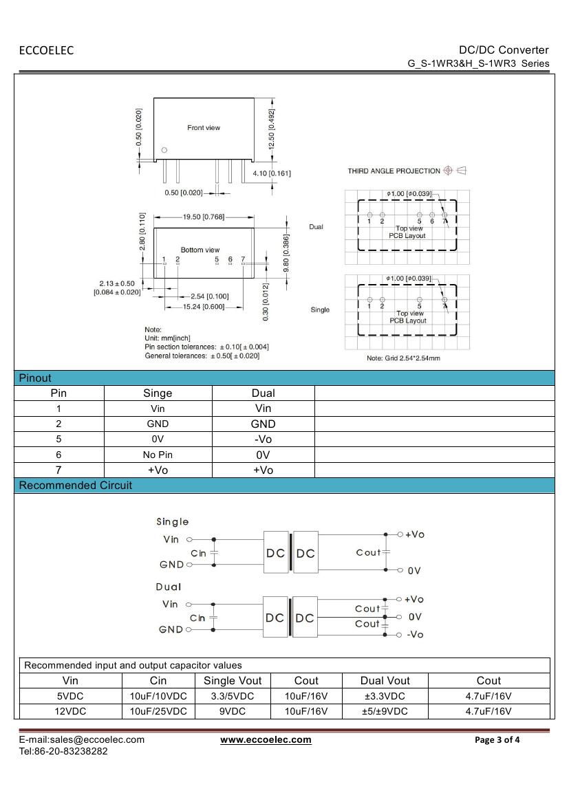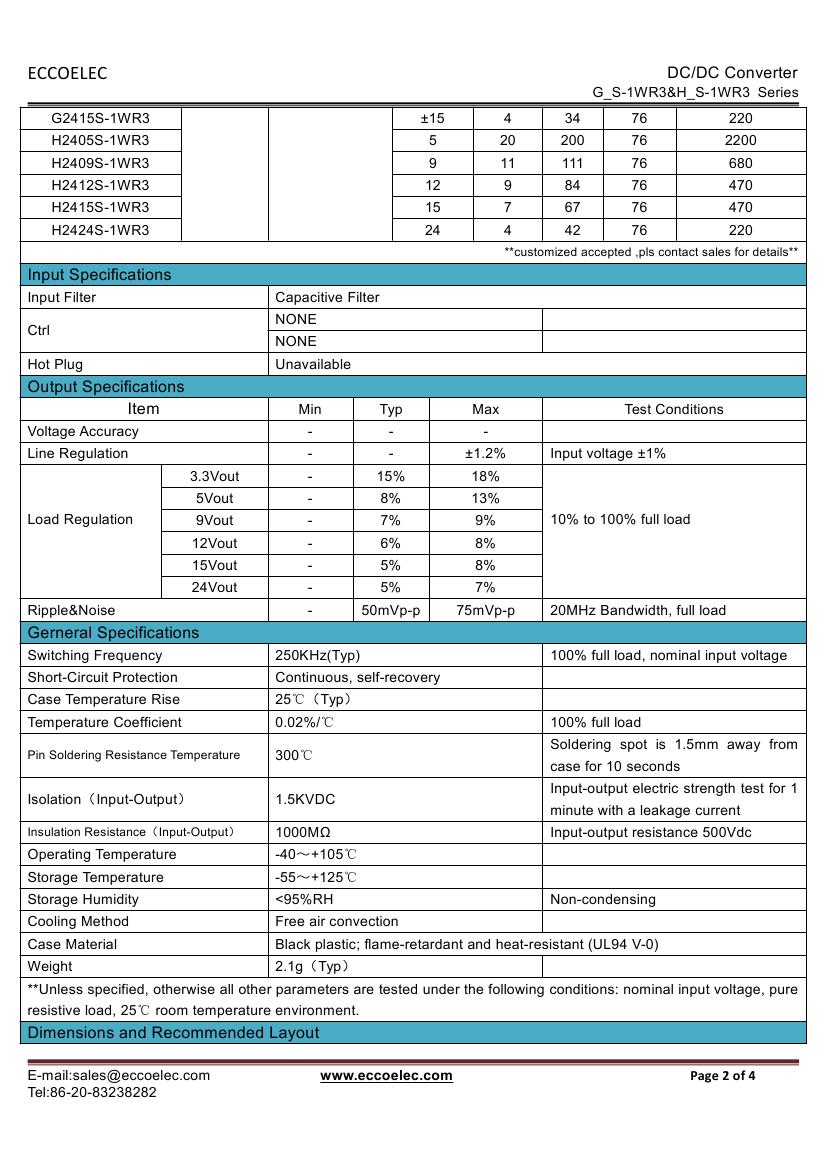 - Output voltage: 3.3V/5V/9V/12V/15V/24V,±3.3V,±5V,±9V,±12V,±15V,±24
