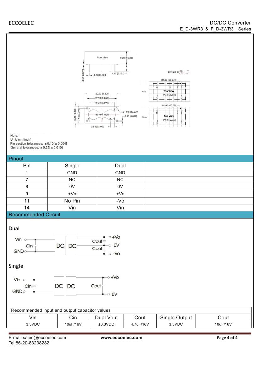 - Output voltage: 3.3V/5V/12V/15V/24V,±3.3V,±5V,±9V,±12V,±15V,±24V