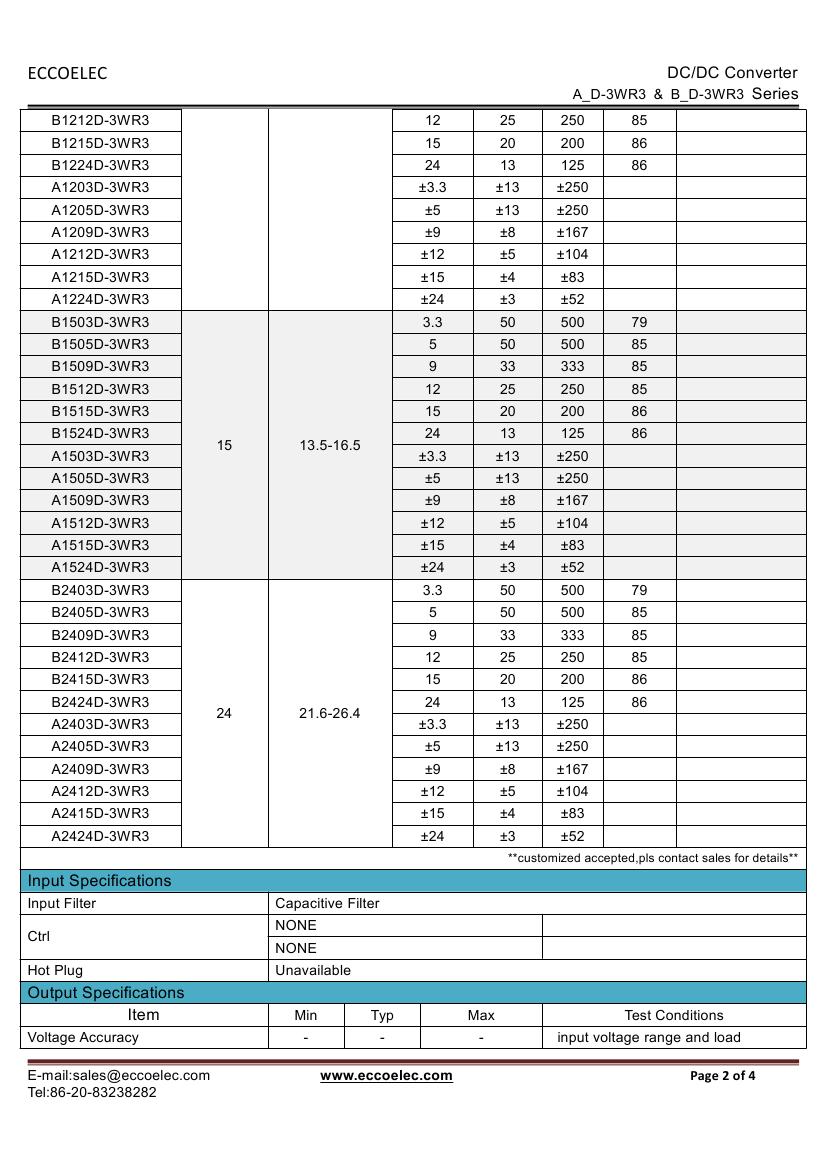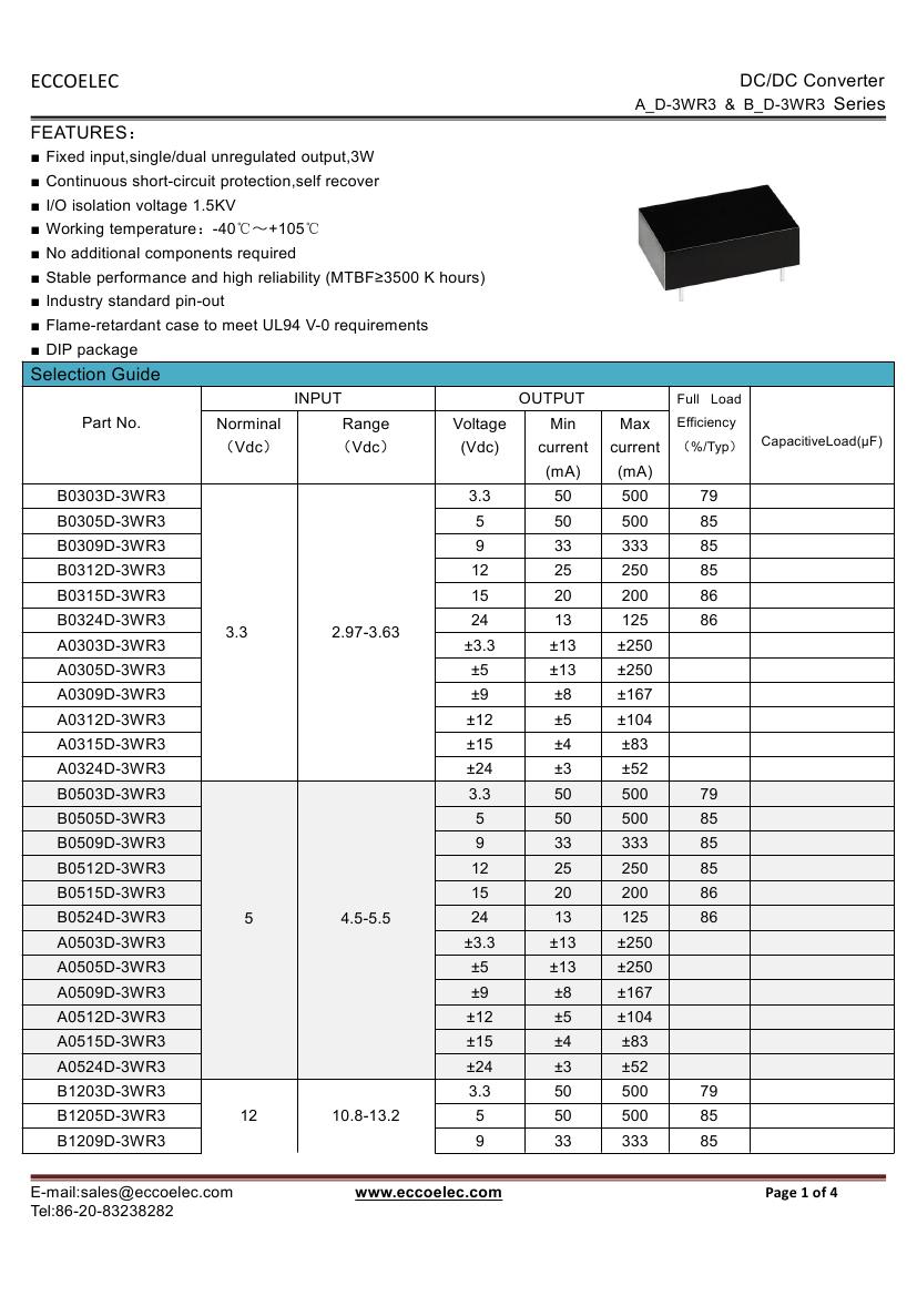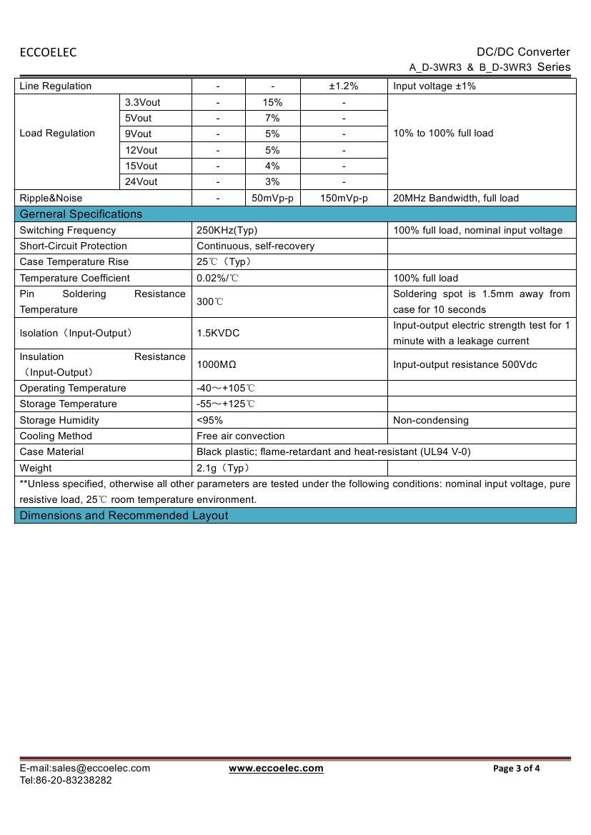 - Output voltage: 3.3V/5V/12V/15V/24V,±3.3V,±5V,±9V,±12V,±15V,±24V