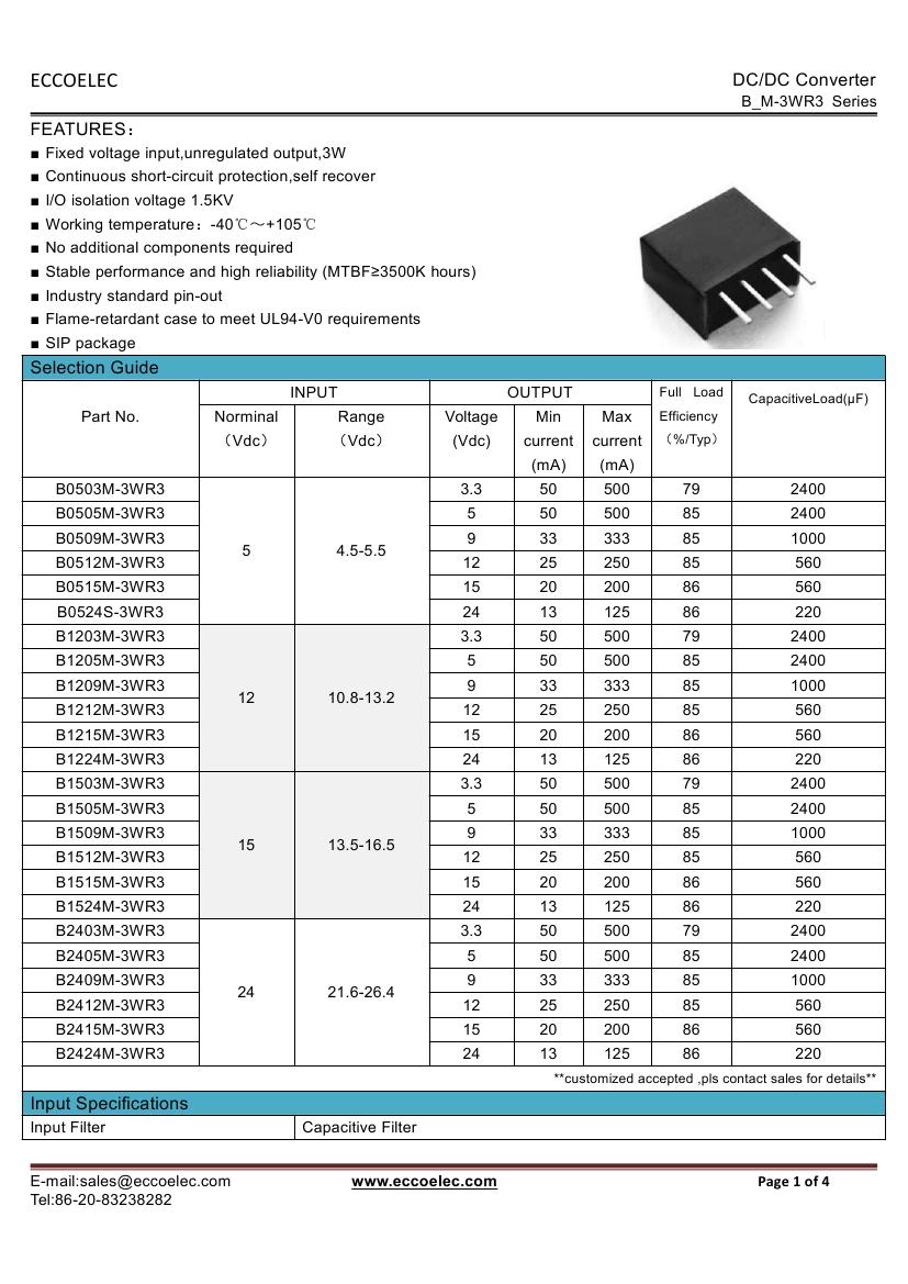 - Output voltage: 3.3V/5V/12V/15V/24V